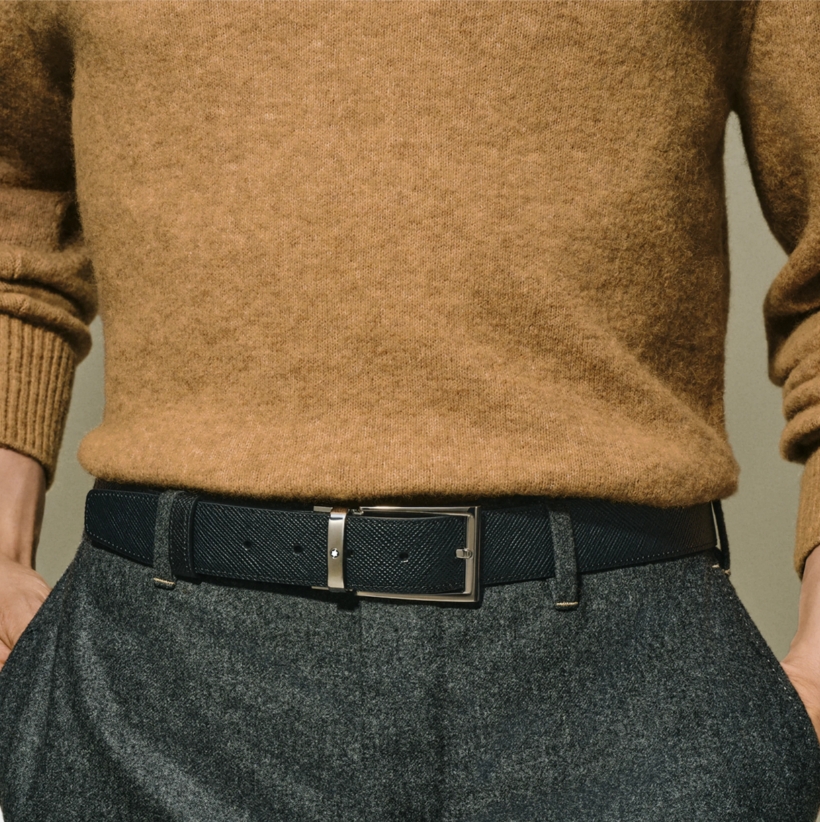Двухсторонний мужской ремень Montblanc: кожа черного и коричневого цвета 35 мм от магазина премиальных ручек Premium Pens в Волжске.